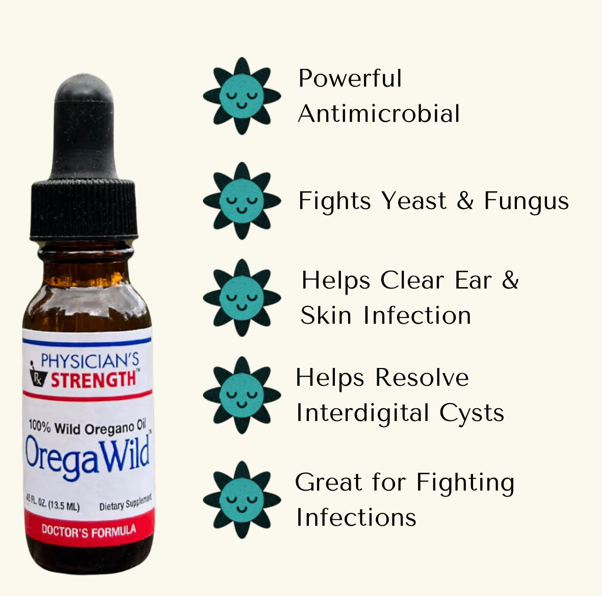 OregaWild - Oil of Oregano is a potent, wild-harvested oregano oil blend loaded with carvacrol and thymol for strong antimicrobial, antifungal, and antiviral support. Perfect for addressing yeast, ear, or skin flare-ups, it’s a powerful rescue option in your pet’s first aid kit.